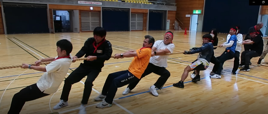 ①『大東スチール運動会』 チーム対抗戦で、綱引き・大縄跳び・リレーなど熱い戦いを繰り広げました。チームで円陣を組み、動かない体にムチ打ち、熱い魂で戦い抜きました!