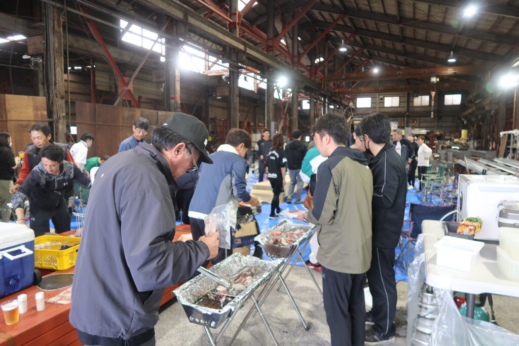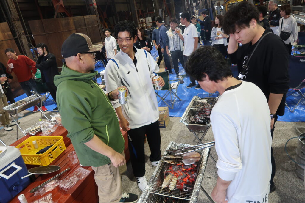 ③『バーベキュー大会』 本社工場にてバーベキュー大会。運動会の優勝チームは高級和牛に舌鼓を打ちました。海老釣り大会で釣り上げたオニテナガエビも美味しく頂きました。
